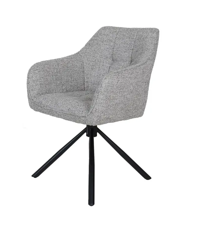 Eetkamerstoel Chris combineert modern design met optimaal zitcomfort. De stoel is bekleed met een zachte stof met een subtiele textuur die een warme en eigentijdse uitstraling geeft aan je interieur. Dankzij de kuipvormige zitting met armleuningen en de comfortabele vulling biedt Chris uitstekende ondersteuning, ideaal voor lange diners of gezellige avonden aan tafel.