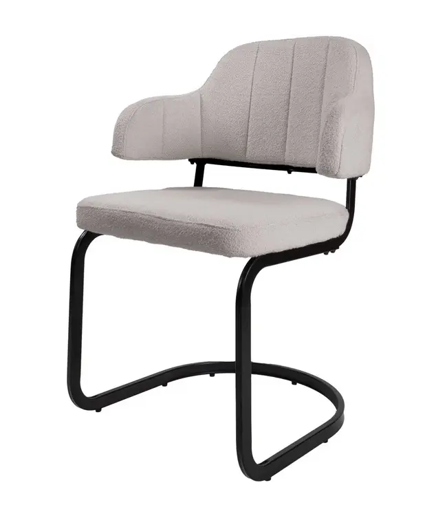 Dankzij de boucle stof die niet alleen zacht aanvoelt, maar ook een chique uitstraling heeft en het metalen onderstel geeft de stoel een eigentijdse twist aan je interieur.