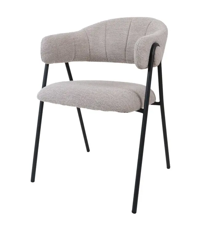 De prachtige Eetkamerstoel Lio maakt zéker een statement in jouw eethoek met zijn unieke uiterlijk. De stoel is bekleed met een zachte boucle stof, waardoor de stoel een luxe uitstraling heeft.