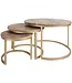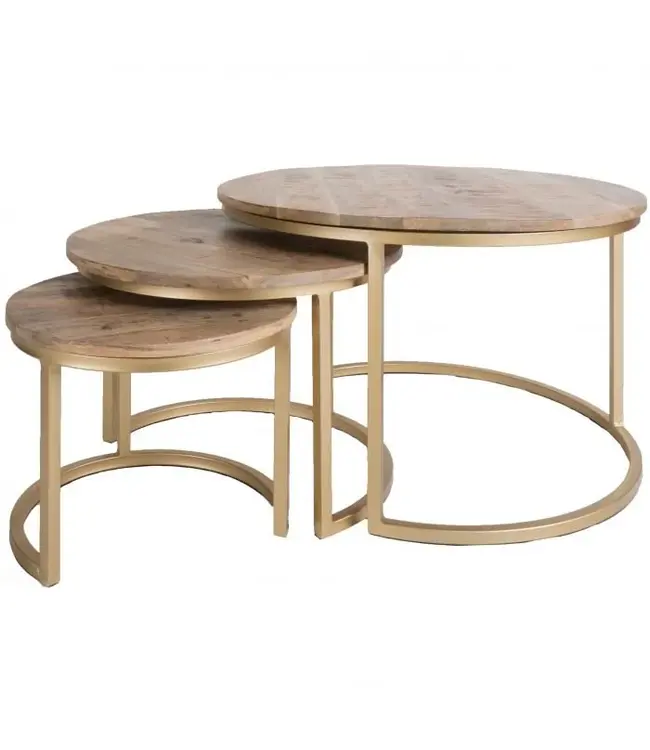 Deze bijzettafel voegt kleur toe in je interieur. Ideaal als je van design houdt in neutrale tinten. Dit is een set van 3 salontafels. De combinatie van het metalen frame en stevig mangohouten blad, geeft deze salontafel een stoere industriële look. De drie salontafels verschillen in hoogte, hierdoor kunnen ze gemakkelijk onder elkaar geschoven worden.