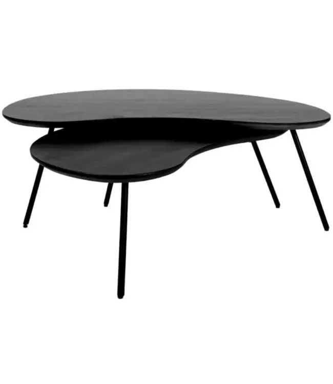 De salontafelset biedt veel ruimte, ideaal om decoratieve items, boeken of je favoriete drankjes binnen handbereik te houden. Met zijn organische ontwerp voegt de salontafelset een natuurlijk element toe aan je interieur. Kies uit twee kleuren, zwart of bruin mangohout, om naadloos aan te sluiten bij jouw persoonlijke stijl en interieur. De metalen poten hebben een diameter van 2 cm. Het mangohout geeft de tafels niet alleen een tijdloze uitstraling maar zorgt ook voor duurzaamheid en warmte in jouw interieur!